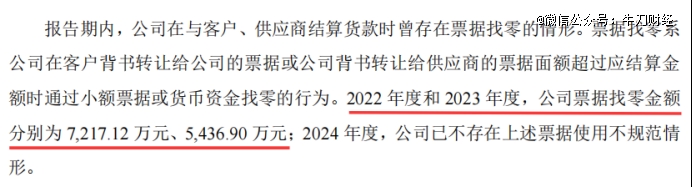 除此之外,在2022年至2023年期间,春光集团在与客户、供应商结算过程中持续存在票据找零现象。涉及的供应商有8家次。同时,公司与客户、供应商结算货款时存在的票据找零金额分别为7217.12万元、5,436.90万元。