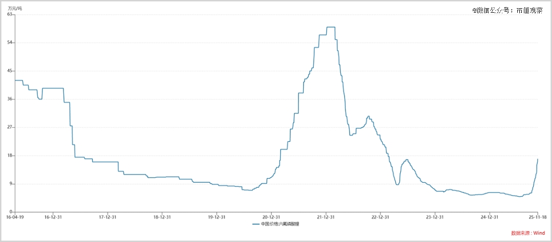 对于六氟磷酸锂未来的价格走势,中信建投研报显示2025年第四季度将进入供需紧平衡状态,这种情况会贯穿2026年,并在第四季度将出现0.7万吨左右的缺口。持续的供需紧平衡为价格上涨提供了基本面支撑,也说明这轮涨价周期依然没有走完,预计站上20万元/吨或只是时间问题。