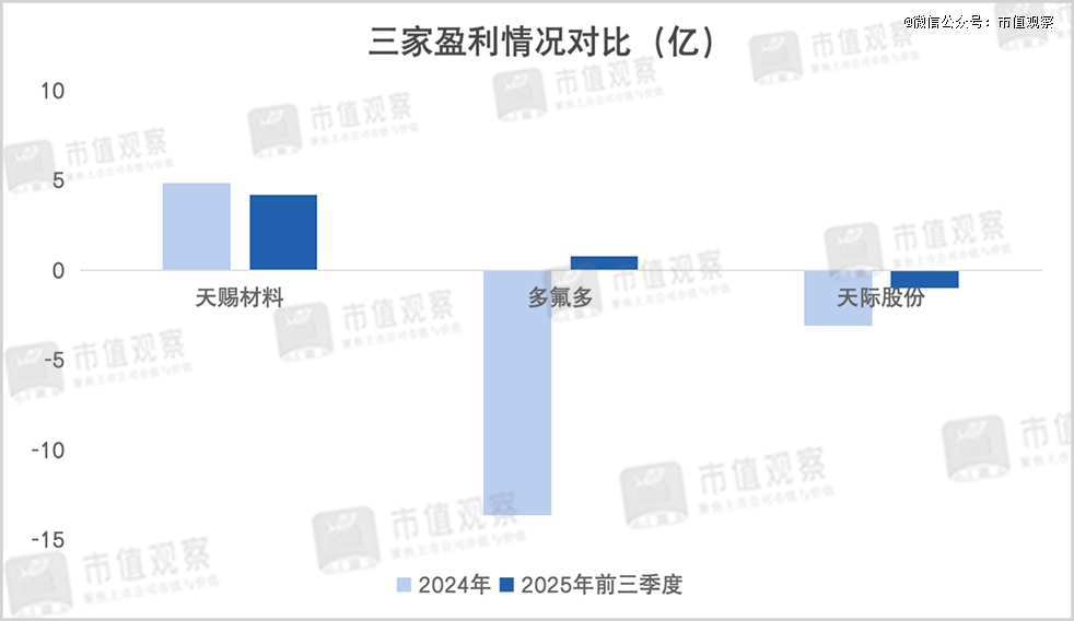从财务状况来看,天赐材料在此前行业低迷期通过一体化布局毛利率相对较高且维持正盈利。就比如2024年其毛利率为18.89%,实现净利润4.84亿,而多氟多和天际股份则由于原材料价格下滑等因素分别亏损了13.61亿和3.08亿,毛利率均为负值。今年前三季度多氟多净利润已经回正,天际股份的亏损金额仍在亿元以上。