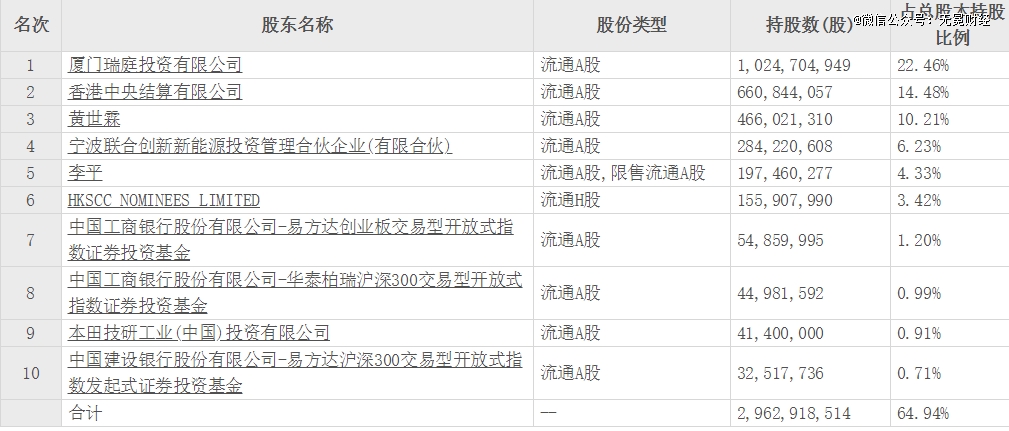▲截至今年9月30日,宁德时代股东架构,图片来自东方财富网。