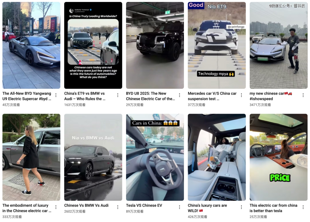 “China car”,这个标签正在成为YouTube、TikTok、X等全球社交平台上的新晋“流量密码”。随手一搜,动辄数百万甚至上亿播放量的测评、体验视频比比皆是。