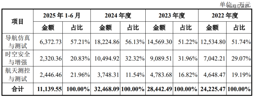 具体来看,2022年至2025年上半年(简称“报告期”),导航仿真与测试业务是北斗研究院的主要营收来源,为公司贡献了50%以上的营收。
