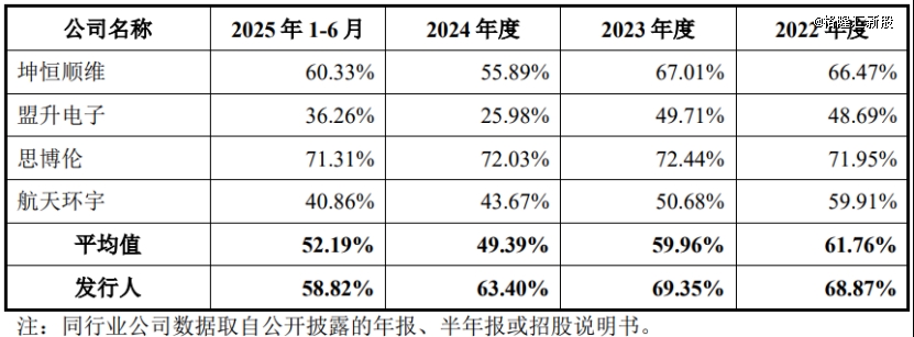 公司与同行业公司毛利率对比情况,图片来源于招股书