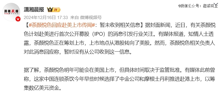 但此前对于多次传出的IPO消息,茶颜悦色方面始终回应称“无明确计划”;直到近日,茶颜悦色再被传出赴港IPO的消息,而此次官方“不予置评”的回应则有些耐人寻味。