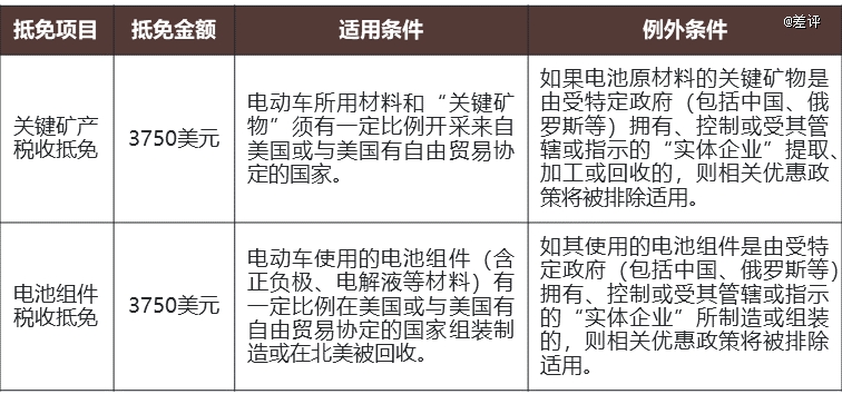 法案里明确要求,美国车企使用的电池组件和关键矿物(比如锂、镍、钴、石墨),不能有中国、俄罗斯、朝鲜、伊朗等企业的成分,否则就拿不到 7500 美元的税收减免。