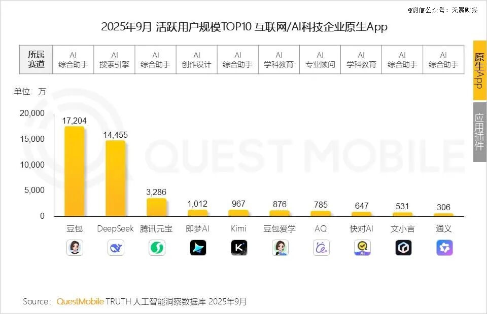 ▲2025年9月AI原生App榜单,图源QuestMobile