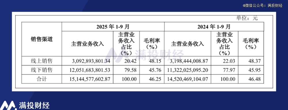 而线下渠道正面临“关店潮”压力——2025年前三季度,公司加盟店及其他门店净减少264家,仅直营店净增115家至1583家。线上渠道则因“保利润、稳收入”策略,增速放缓:2025年前三季度线上收入同比下降3.3%,三季度单季更下滑20.5%,难以对冲线下压力。