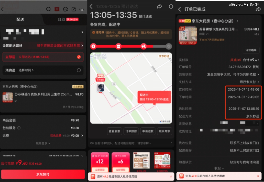 京东自营秒送体验,全程只需16分钟