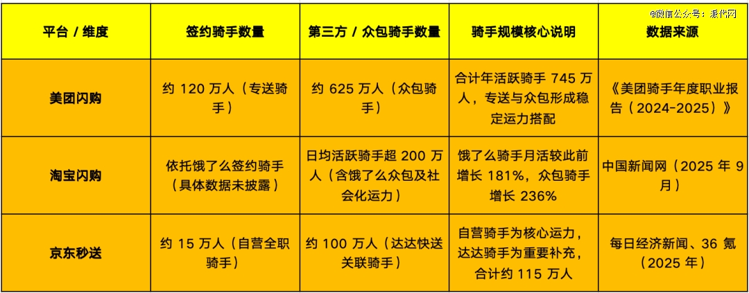 反过来看淘宝闪购,它的日订单量接近美团,但旗下的专职骑手只有200万左右,很多时候得依靠众包等社会化运力来补充。运力一杂,订单履约的稳定性难免会打折扣。