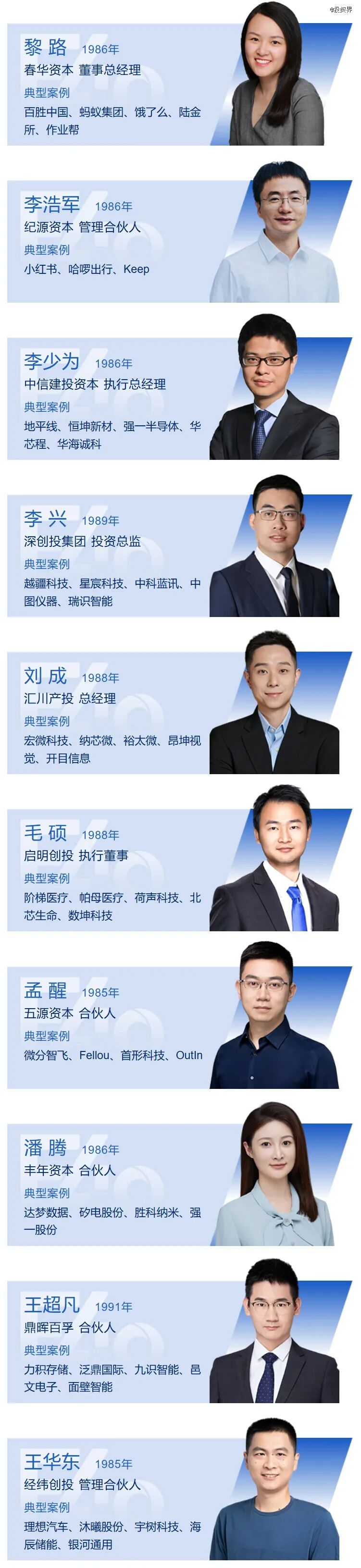 清科控股旗下创业与投资资讯平台——投资界连续八年发起「F40中国青年投资人」,F是Fancy,代表无限想象力;也是Future,代表未来前瞻力。今天,2025投资界「F40中国青年投资人」正式揭晓。