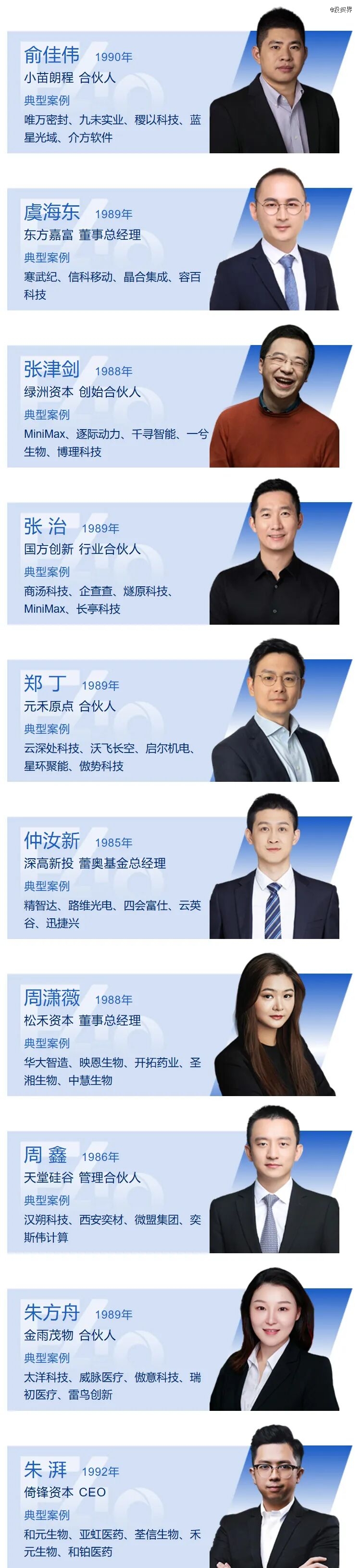 正如本年度「F40中国青年投资人」,我们看到头部机构内部迎来代际传承,年轻一代正在成为中坚力量;洗牌之下,一批扎根于细分赛道的机构新面孔登上舞台;同时,CVC群体成为创投圈一支愈发重要的力量。