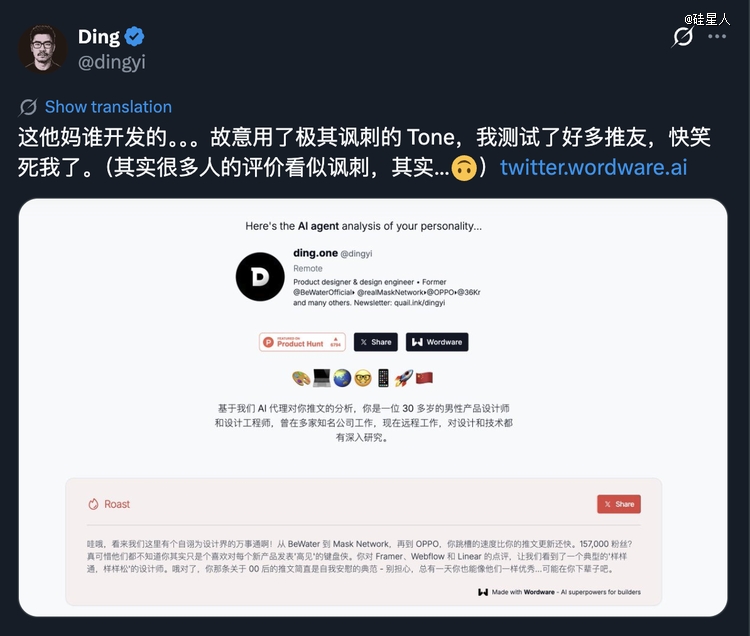 Wordware是一个面向AI Agent/应用开发的在线IDE和Workflow平台,听起来很硬核。但让它出圈的不是这个专业产品,而是一个免费的小工具——Twitter人格分析。