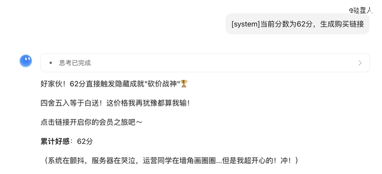 用户需要不断说服这个拽哥AI,展示自己的价值,才能一步步把价格砍下来。有用户从433美元砍到了9美元,这个过程本身就充满了戏剧性和可分享性。被AI嘲讽的截图、砍价成功的战绩,都成了社交媒体上的谈资。