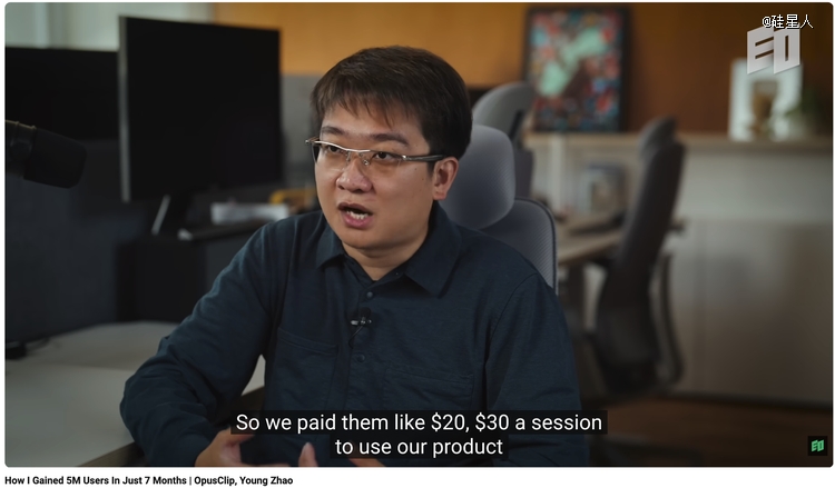 OpusClip的故事更曲折。它最初做的是一个AI直播工具,功能很酷,但没人愿意用。发布三个月后,只有200个用户,而且这200个用户还是团队花钱请来的,每人每次访谈支付20到30美元,请求他们持续使用并反馈意见。
