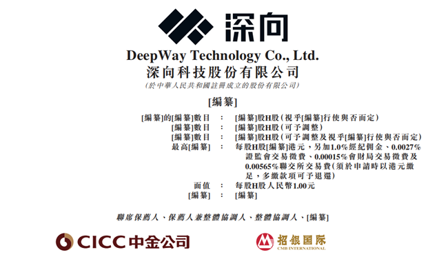 11月6日,深向科技股份有限公司(简称:DeepWay深向)向港交所递交招股书,拟在香港主板上市,联席保荐人为中金公司和招银国际。
