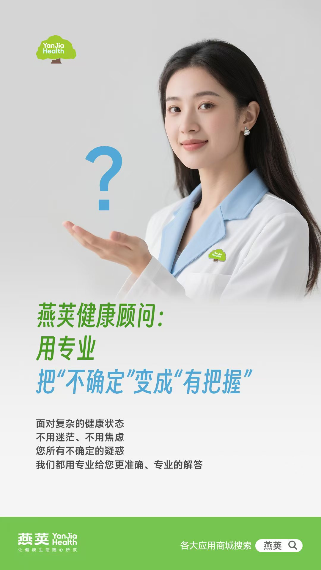 当孩子挑食偏食不知如何搭配营养,当孕期反应剧烈却对饮食禁忌一知半解,当尝试无数美容方法却不见成效,当被亚健康状态反复困扰……我们总会在健康的十字路口陷入迷茫:这样的选择真的适合我吗?这个问题的答案到底是什么?面对这些“不确定”,燕荚健康用专业给出了笃定的回应——您所有健康疑惑,我们都能让它从“不确定”变成“有把握”。
