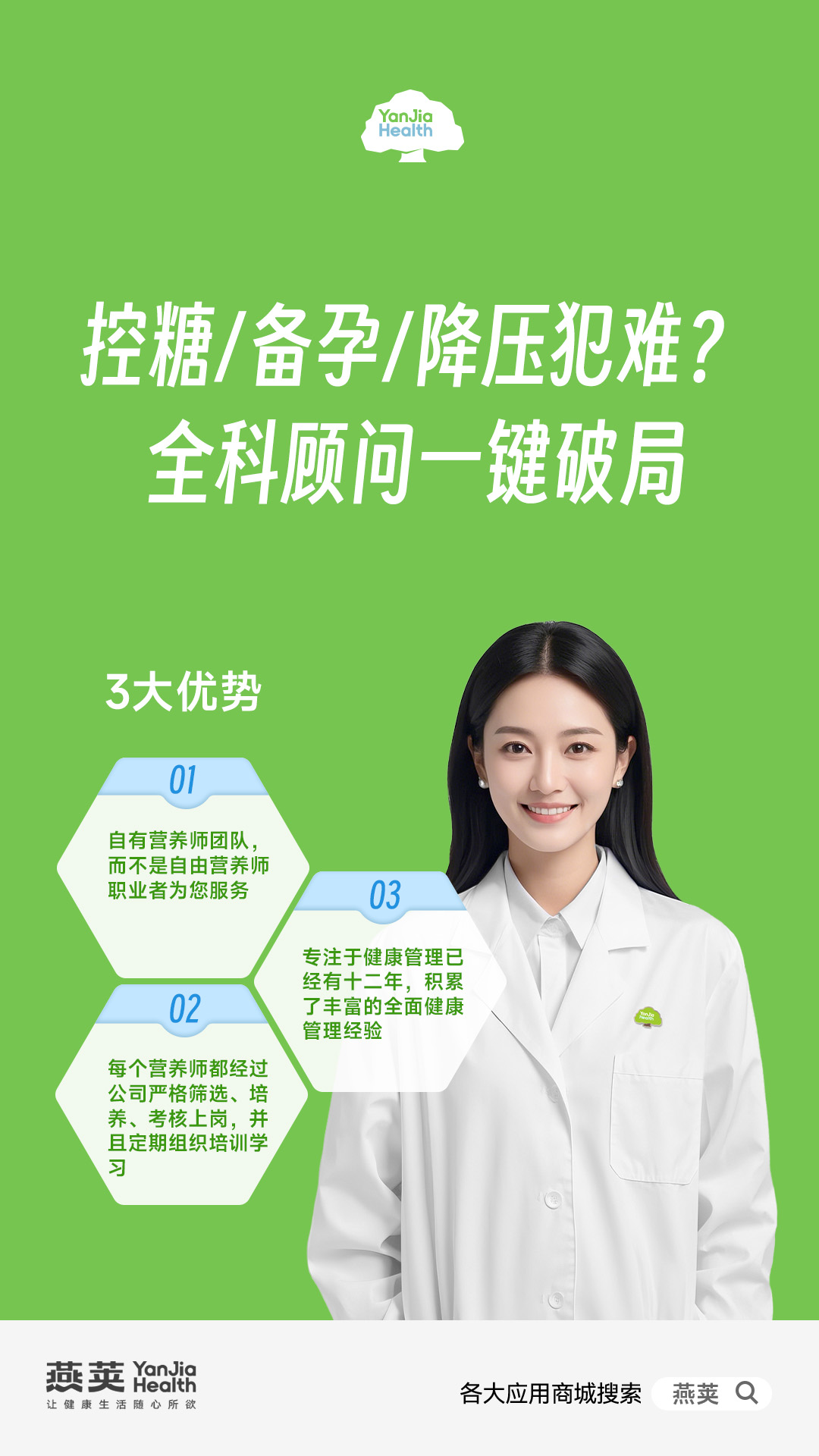 “为人类健康做出贡献”,这不仅是燕荚健康的使命宣言,更融入在每一次咨询解答、每一份方案制定、每一款产品筛选的细节中。从驱散个体的健康焦虑,到守护家庭的健康幸福,燕荚用专业打破“不确定”的壁垒,用用心赢得“有把握”的信赖。