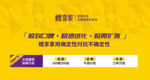 鲤享家以“社区连锁、百城万店”为策略,深耕存量市场。目前业务已覆盖全国270城350余店,形成鲤享旧改、鲤享助老、鲤享智改、鲤享商装、出租快装等业务板块,全面覆盖多种改造场景。通过“直营+加盟+城市服务商”的复合模式,鲤享家已跑通单店盈利模型,在此基础上,具备了快速规模化的复制能力,稳步推进“百城万店计划”,并立志在未来三年实现“万店”规模,真正达成“百城万店”的战略宏图。
