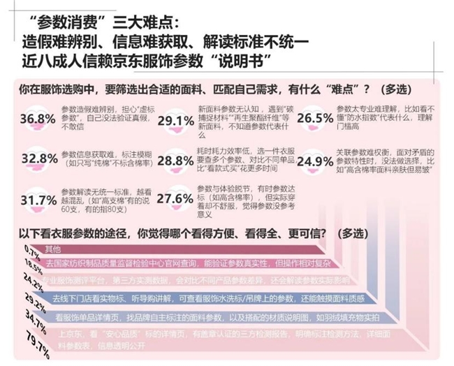 与以往不同,双11期间消费者购买行为发生了显著变化,成分、面料与参数成为影响消费者决策的核心因素。根据经济观察报双11消费调研报告,超过七成消费者在选购冬季服饰时会主动关注面料材质、充绒量等硬指标。在平台选择上,近八成消费者将京东作为购买品质服装的首 选。
