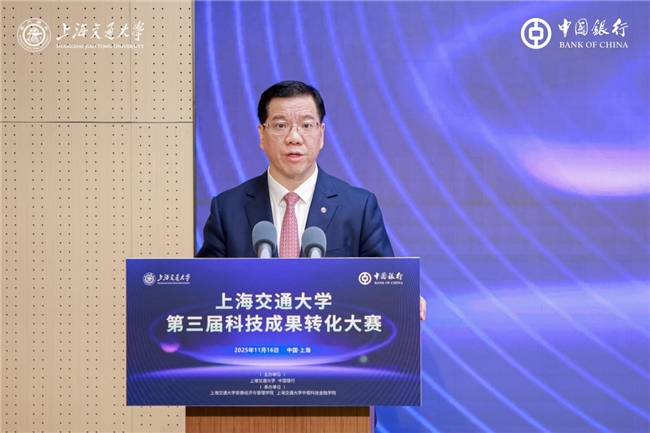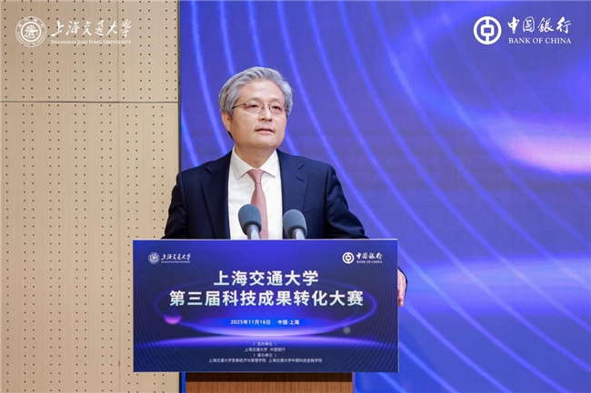 陈志能在致辞中代表中国银行上海市分行对本次活动的举办表示祝贺,并对上海交大及各界专家长期以来的信任与支持表达衷心感谢。他回顾了中行与交大紧密的合作历程,指出上海交大中银科技金融学院已成为汇聚“产、学、研、创、用”资源的重要平台。中国银行将持续以“投早、投小、投硬科技”为方向,为科技企业提供全生命周期金融服务,并通过大赛推动科技成果落地。
