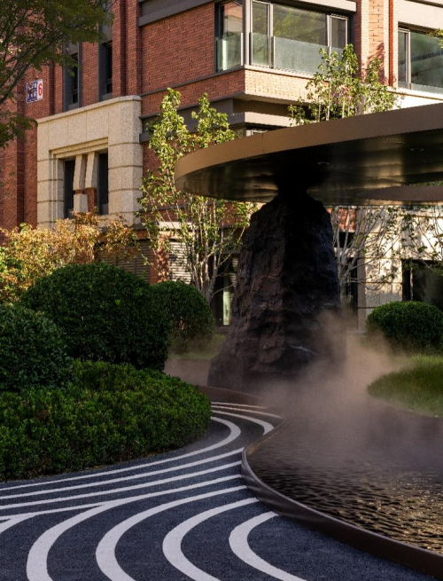 项目以《诗经》“风·雅·颂”为文化内核打造的“一环两轴三组团六空间”园林格局,在交付后展现出成熟社区的活力。北侧的“欢颂”组团,以山水会客厅为核心,成为孩子们嬉戏玩耍的乐园;中央的“听风”区域,金属廊架与半下沉庭院构成了业主未来多元的休闲空间;南侧的“隽雅”组团则更多考虑长者需求,适老化的设计让这里的氛围更为宁静。而园林之中多节点的景观水系,则让业主在归家途中能邂逅灵动水景,每一次回家都如同一场“沉浸式自然美学之旅”。