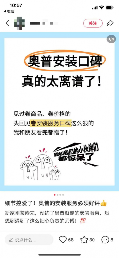 在服务体验方面,奥普同样赢得了用户的广泛认可。多位消费者表示,奥普的安装与售后团队响应及时、沟通顺畅、服务细致专业,不仅安装速度快、流程规范,还会主动讲解使用方法、根据装修进度灵活调整上门时间,真正做到了贴心到家。用户普遍提到“安装师傅态度好、手艺好、守时负责”“售后跟进耐心、反馈快、处理到位”,即便遇到紧急情况或使用疑问,也能第 一时间获得耐心解答与协助。正是这种从购买到安装再到使用全过程的安心体验,让越来越多用户称赞奥普“服务靠谱”“选得很安心”,进一步强化了其作为专业卫浴品牌的信赖度与好口碑。