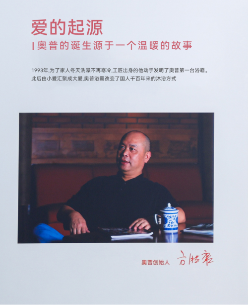 1993年,为了家人冬天洗澡不再寒冷,奥普创始人研发了第 一台集取暖、照明、换气三功能为一体的产品,并取名为“浴霸”。1996年奥普自主研发第 一台风暖浴霸上市,总裁方胜康被行业、市场公认为"浴霸之父"。三十年后,浴霸早已不止是取暖工具。奥普通过不断创新,将产品功能从“取暖”扩展到“除菌、除臭、美容、智能恒温”等多个维度,让浴霸成为“卫浴的智能电器中枢”。