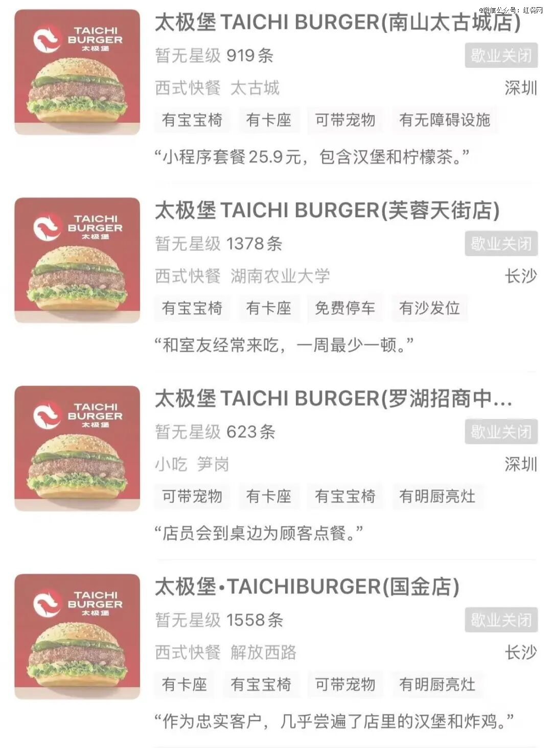 目前,太极堡仍有7家在营门店,未来,品牌将进一步收缩,还是能够通过模式优化、区域聚集或产品迭代等方式探索出新的发展路径,仍有待进一步观察。