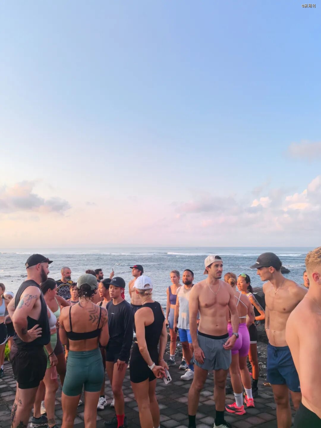 除了泡馆,巴厘岛几乎每天都有晨跑、瑜伽等活动,召集者通常为健康餐饮或咖啡店的“主理人”。活动完全免费,运动小白也被热烈欢迎加入。每天早晨6点开始,人们成群结队,一起跑过街道、稻田、海边,迎接日出。