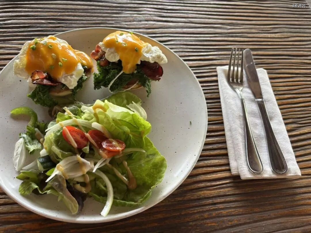 相比之下,健身餐甚至显得有些昂贵。场地一般提供适合减脂的“白人饭”,薯条吐槽,一个班尼迪克蛋加上青菜、米饭、少量鸡肉的套餐,折合人民币是80块钱。