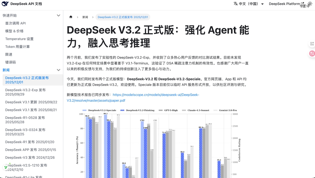 12 月 1 日,DeepSeek 发布了两款新模型 —— DeepSeek V3.2 和 DeepSeek-V3.2-Speciale。