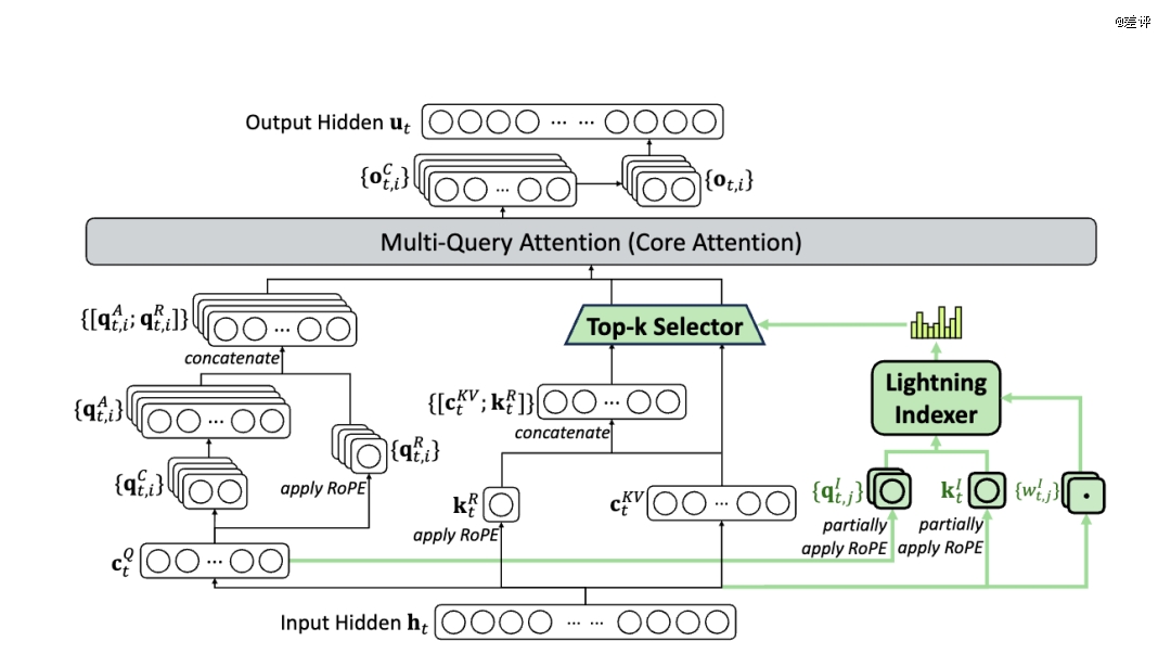 这东西在之前的 V3.2-EXP 版本里出现过,当时只是测了一下 DSA 会不会影响模型的性能,现在是真的把这玩意给放到了主力模型上。