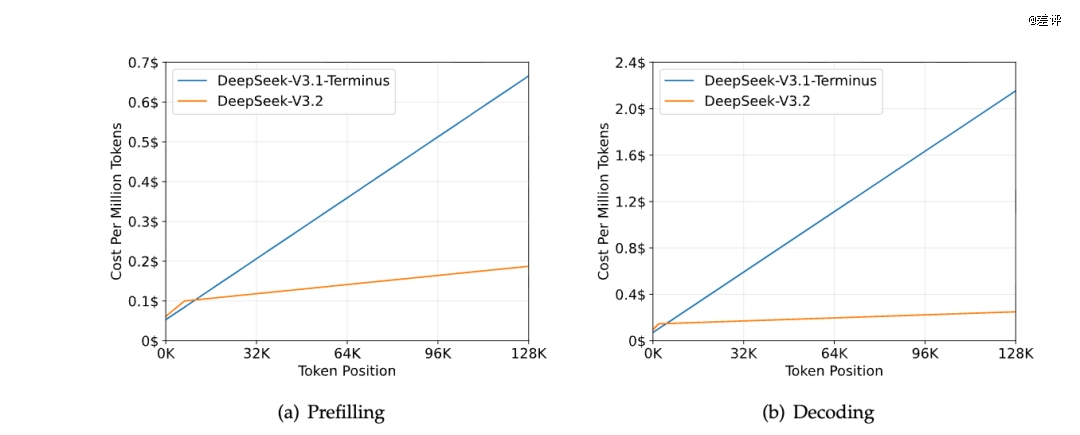 在下面这张图里可以看到,随着句子越来越长,传统的 V3.1 的推理成本是越来越高。