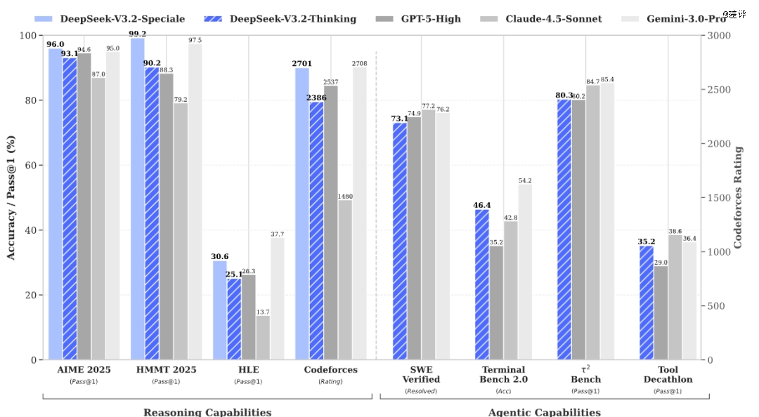 通过这修改模型架构,重视后训练,强化 Agent 能力的三板斧,DeepSeek 才终于让自己的新模型,有了能和世界*开源模型再次一战的能力。