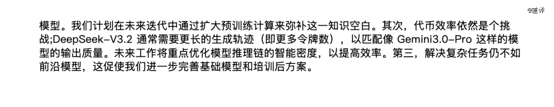 比如这次论文就提到了,这次的 DeepSeek V3.2 Speciale 虽然能和谷歌的 Gemini 3 Pro 来打的五五开。
