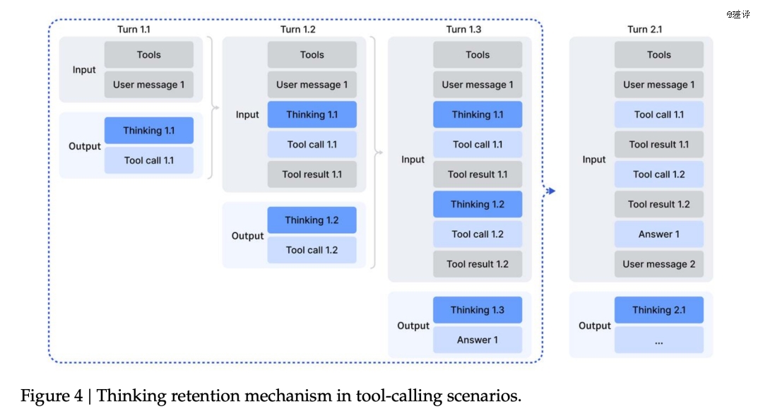 现在的规则变成:在一整串工具调用的过程中,模型的“思考过程”会一直保留下来,只有当用户发来一条新的提问时,才会重置这一轮推理;而工具的调用记录和结果,会像聊天记录一样一直留在上下文里。