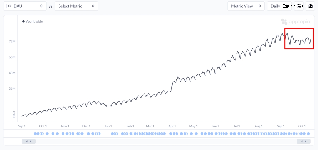 第三方数据公司 Apptopia 统计称,ChatGPT 的移动端日活跃用户增长自 4 月以来明显放缓,9 月至今已陷入停滞。同时,ChatGPT 在美国的每日活跃用户平均使用时长自 7 月以来下降了 22.5%,平均对话次数也减少了 20.7%。