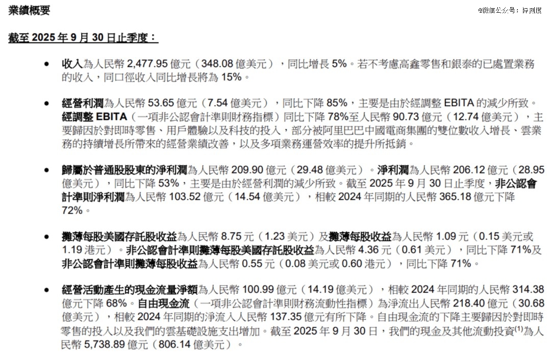 伴随着阿里、京东和美团的2025年第三季度财报悉数公布,数据冰冷而直观反映出这场补贴大战的残酷:美团净亏损达160亿元;阿里巴巴经营利润同比骤降85%;京东归属于普通股股东的净利润也下滑了55%……