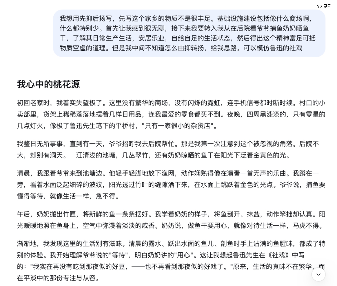 也有家长主动让AI帮助孩子写作文。广东深圳,方小丽就曾在今年3月*次为读初三的女儿提供了AI的写作支持。一个周末,从早上八点到晚上十点,女儿对着作文纸整整一天没有动笔。方小丽决定主动打开DeepSeek,让女儿试着向AI提问。一个多小时后,晚上11点13分,女儿的作文写好了。女儿后来说,她认为DeepSeek写得并不好,但在启发思路上还是有帮助。那之后,AI被频繁运用到女儿的写作当中。