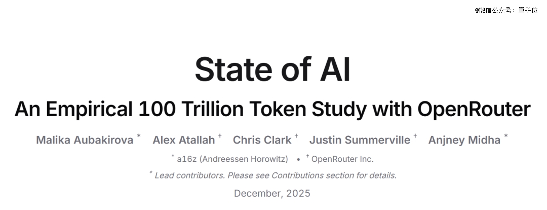 这份报告由OpenRouter和a16z联合出品,标题为《State of AI:An Empirical 100 Trillion Token Study with OpenRouter》。
