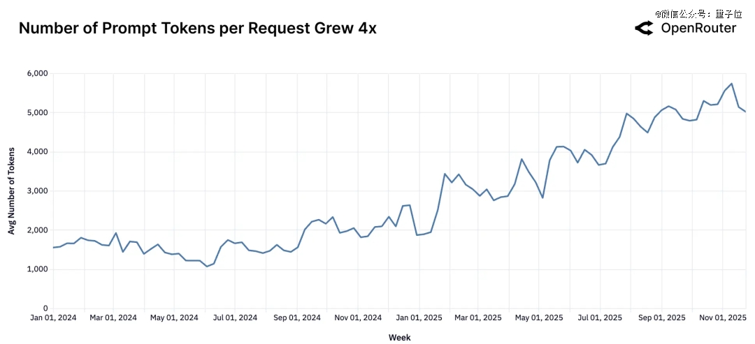 报告提到,用户平均每次给模型的提示词增加了约4倍,这反映出工作负载越来越依赖上下文信息。