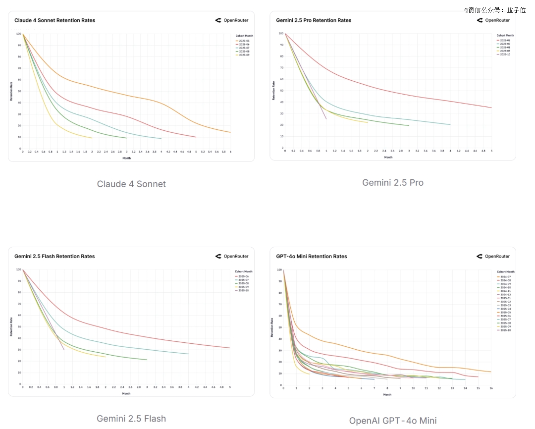 成功锁定(如Claude、GPT-4o Mini):在刚发布时就抓住了一批核心用户,这些用户粘性极高。