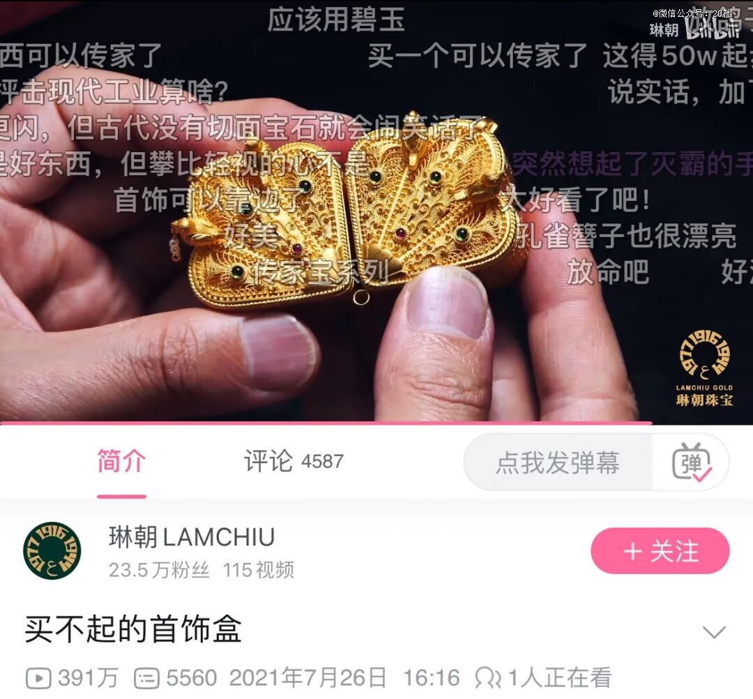 如今琳朝在抖音的粉丝达到135万,在B站的视频互动屡屡破圈,直接奠定了琳朝在大众心目中的认知,“传家宝级别”,“这才是奢侈品”,“不是金饰土,是不土的我买不起”。