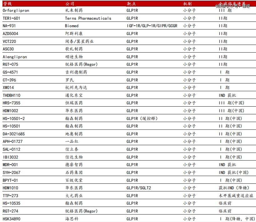 图:口服GLP-1药物研发一览,来源:麦高证券