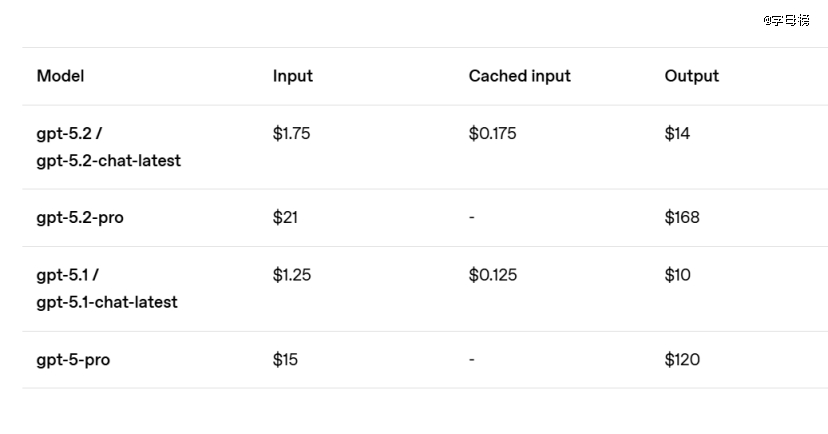 GPT-5.2 Pro价格也提高了,每百万输入token 21美元,每百万输出token 168美元。