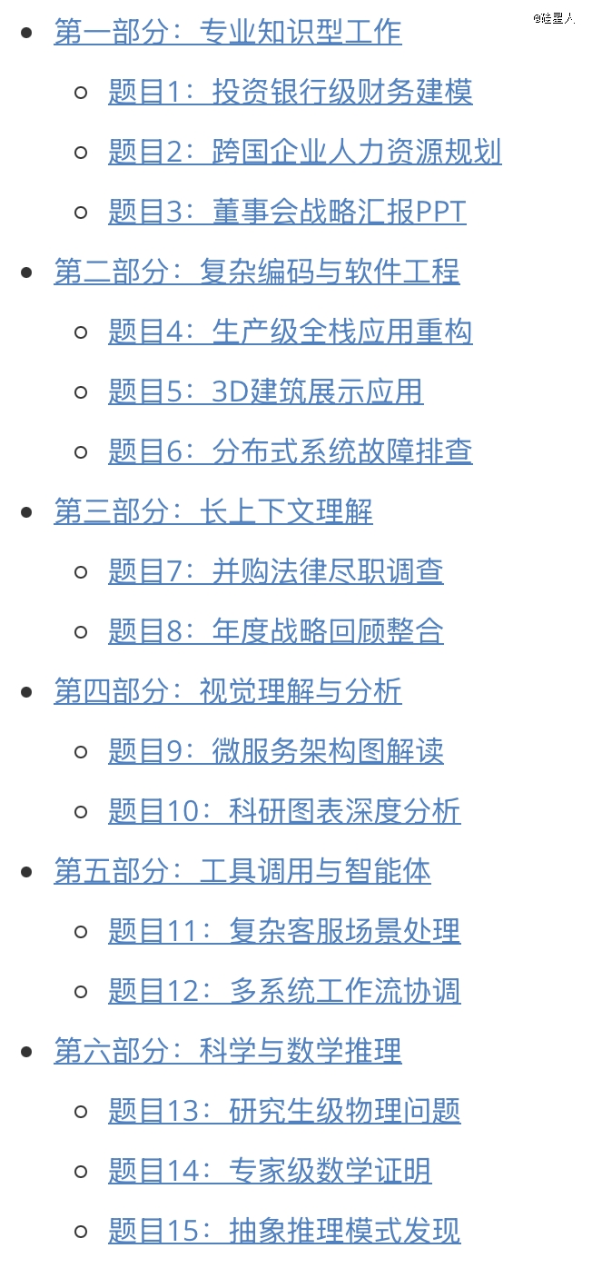 我按 GDPval 的“交付物导向”自己做了 15 道题:预计总测试时间 8–12 小时那种,把投行、HR、软件工程、事故复盘、并购尽调、图表分析、工具调用全塞进去了。