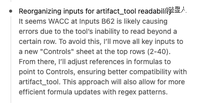 GPT-5.2 选择了后者。它没有依赖幻觉,而是做出了一个不一样的决策:重构表格架构。它像一个真正的工程师一样思考:“既然工具读不到下面,那我就把核心参数搬运到上面去。”