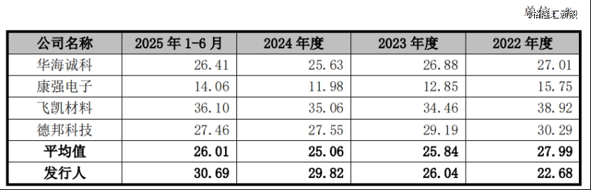 发行人与同行业可比公司毛利率对比,来源:招股书