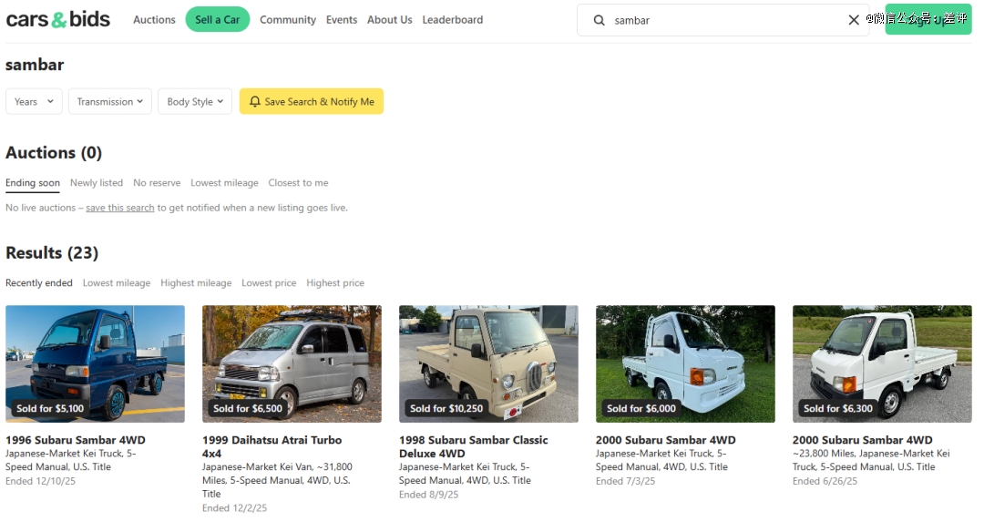 而 sambar 现在在美国的二手车拍卖网上,也就 6000 美元,二手的 F-150 则是它的一倍多。