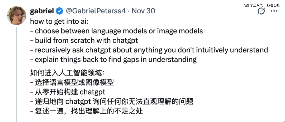 直到最近,我刷到了 Gabriel Petersson 辍学,用 AI 学习进入 OpenAI 的故事。